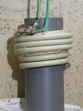 - Couper le coax bobiné afin d'obtenir le bon R.O.S. la valeur de la capacité fixe est alors déterminée.